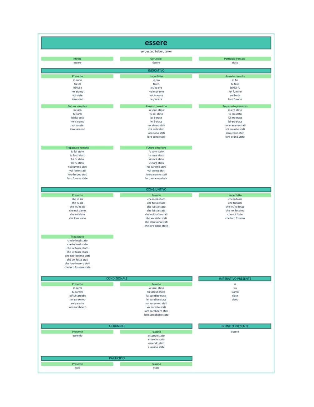 🇺🇸 Este archivo de Excel contiene más de 2000 conjugaciones de verbos. Ideal para aquellos que están aprendiendo italiano. Usa este Excel para practicar tu conjugación de verbos o como referencia.
