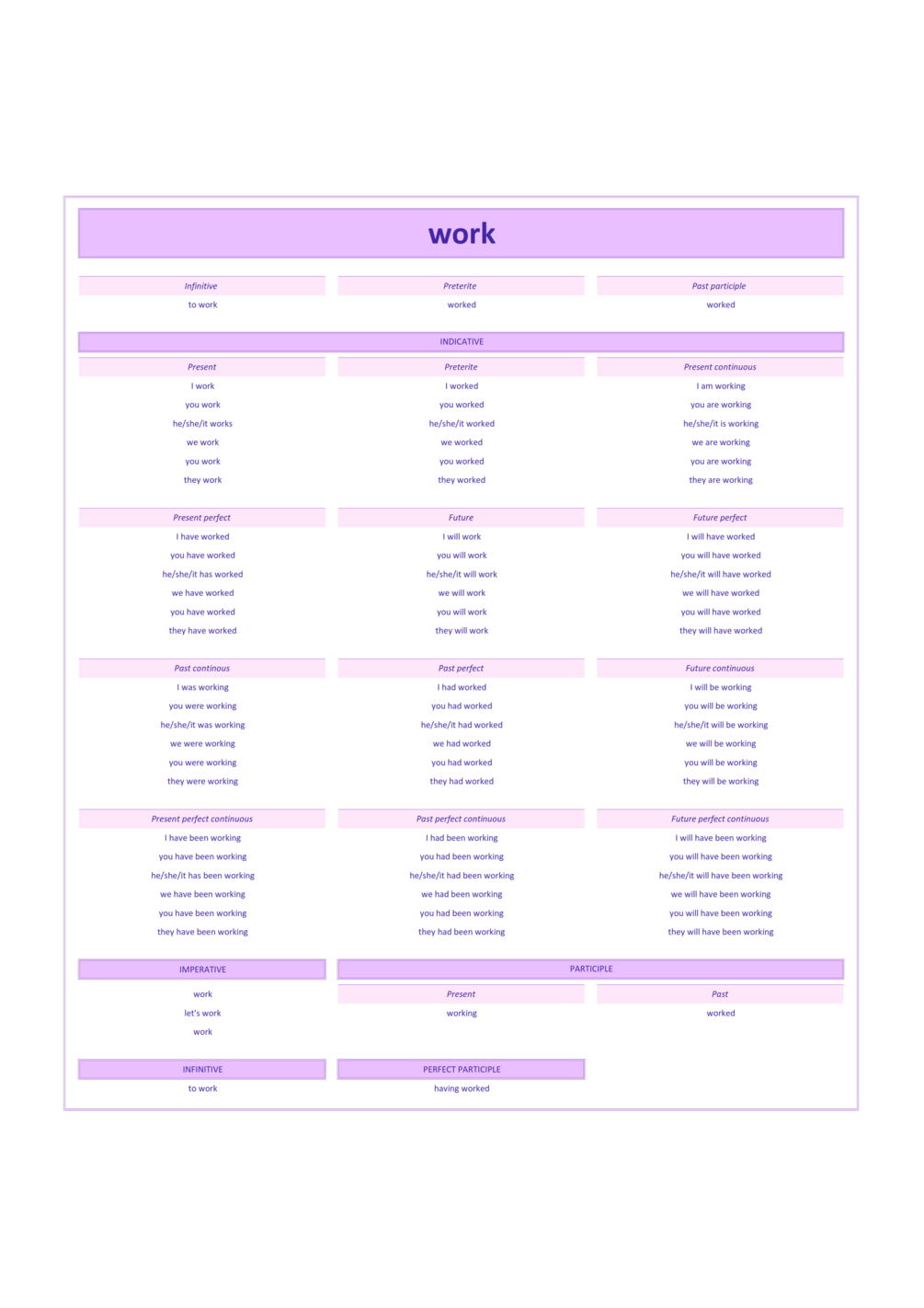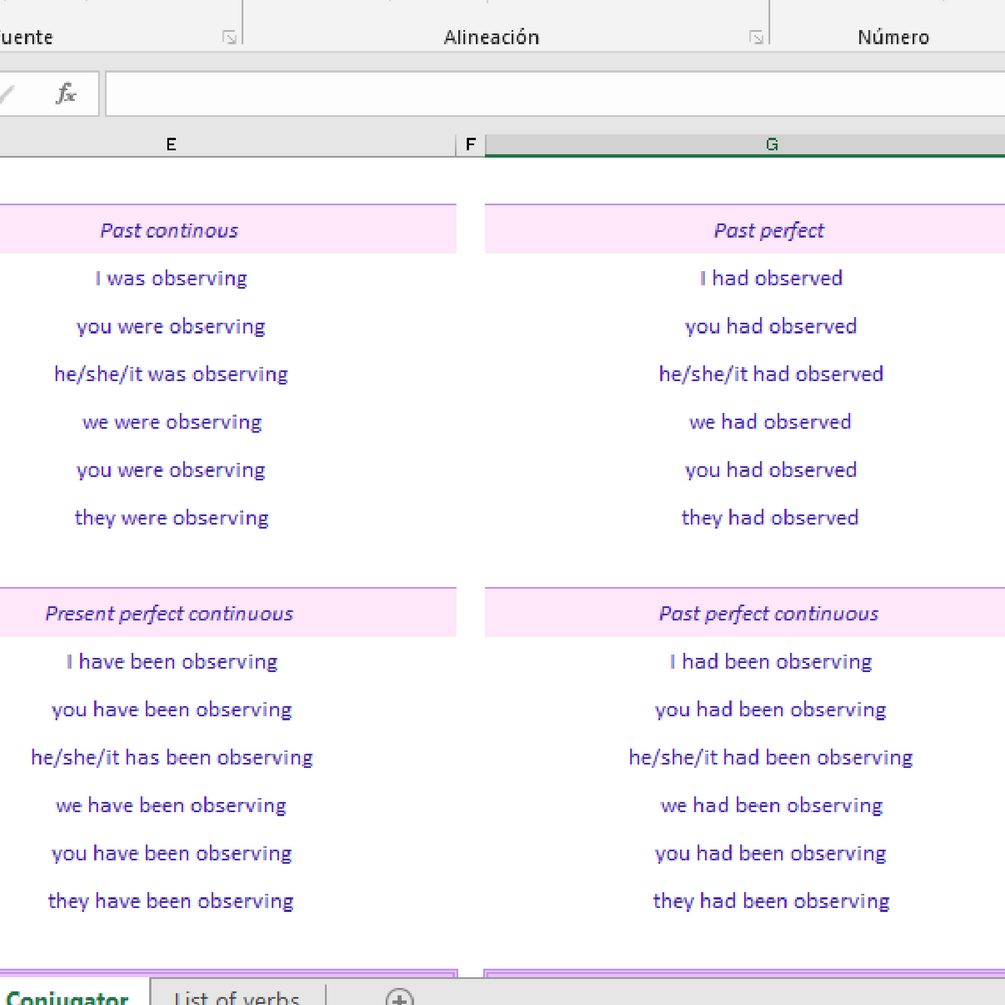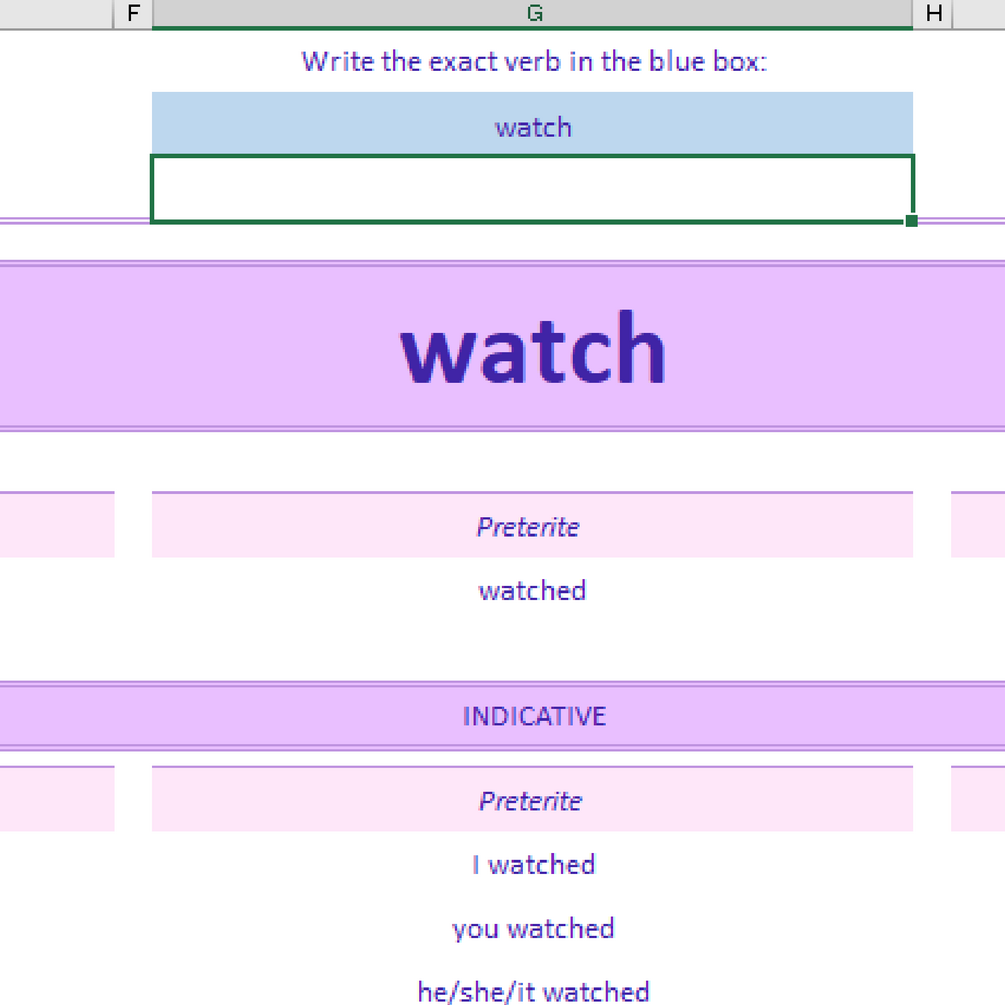 🇺🇸 This Excel file contains more than 3000 verb conjugations. Ideal for everybody who wants to learn English. Use this excel to practice conjugating verbs or use as a reference chart for verb tenses in more advanced levels. Learn Verb Forms easily using this Excel file and improve your English.